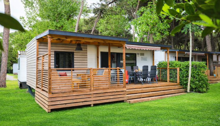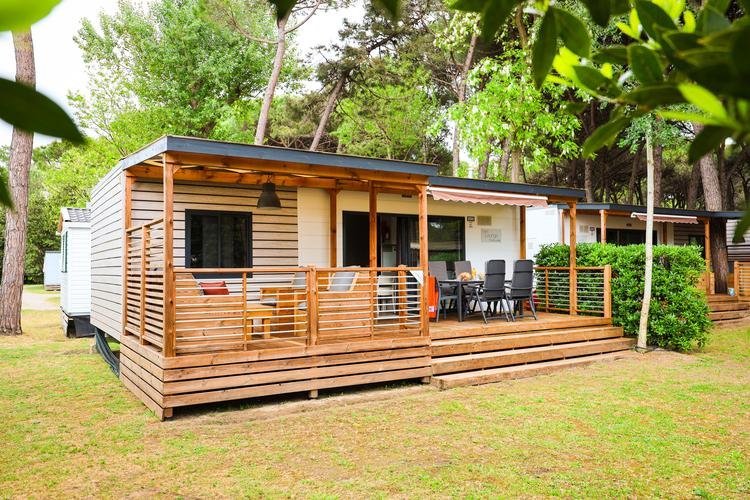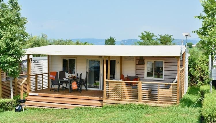 Außerdem verfügt das Mobilheim über eine komfortable, vollständig überdachte Holzterrasse mit Lounge-Set, so dass Sie bei jedem Wetter den Aufenthalt im Freien genießen können. Die Klimaanlage sorgt für zusätzlichen Komfort und kann in der Vor- und Nachsaison auch als Heizung dienen.