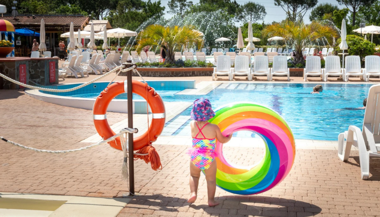 Das Herz des Campingplatzes liegt in einem zentralen Bereich von ca. 10.000 m². Hier befinden sich auch die 4 Schwimmbäder und der Aquapark mit Rutschen. Die Liegen und Sonnenschirme am Schwimmbad sind gratis zu benutzen. Am Schwimmbad gibt es eine Poolbar für tagsüber ein Sandwich, Kaffee, Espresso und Cappuccino. Genießen Sie dort auch am Abend den wunderschönen toskanischen Sonnenuntergang.